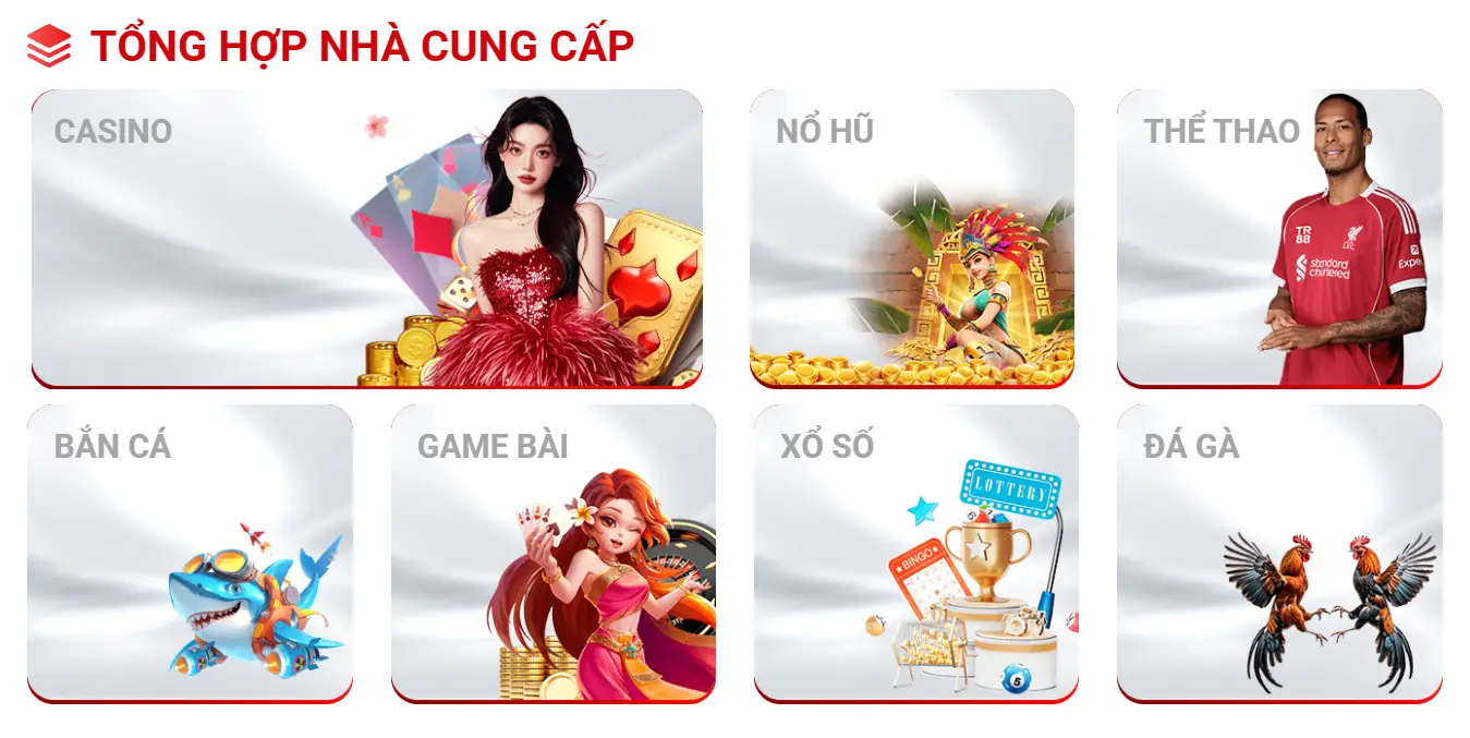 | Cập nhật đầy đủ các giải đấu lớn nhỏ trong ngoài nước, đặc biệt là bóng đá. Tỷ lệ kèo được điều chỉnh liên tục theo diễn biến trận đấu, đảm bảo sát với thực tế thi đấu cho bạn bắt kèo thơm | Trực tiếp trận đấu từ nhiều trường gà lớn, hình ảnh rõ nét, cập nhật theo thời gian thực. Thông tin chiến kê, tỷ lệ cược, kết quả đều được hiển thị minh bạch trước khi đặt cược cho bạn xem xét | Sảnh game bài cung cấp các trò chơi quen thuộc như Tiến Lên, Mậu Binh, Phỏm, Xì Tố,… với luật chơi chuẩn. Hệ thống phòng chơi được chia theo mức cược, kỹ năng cho bạn dễ dàng lựa chọn |